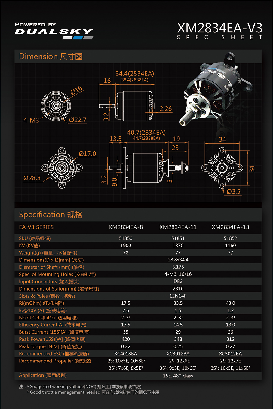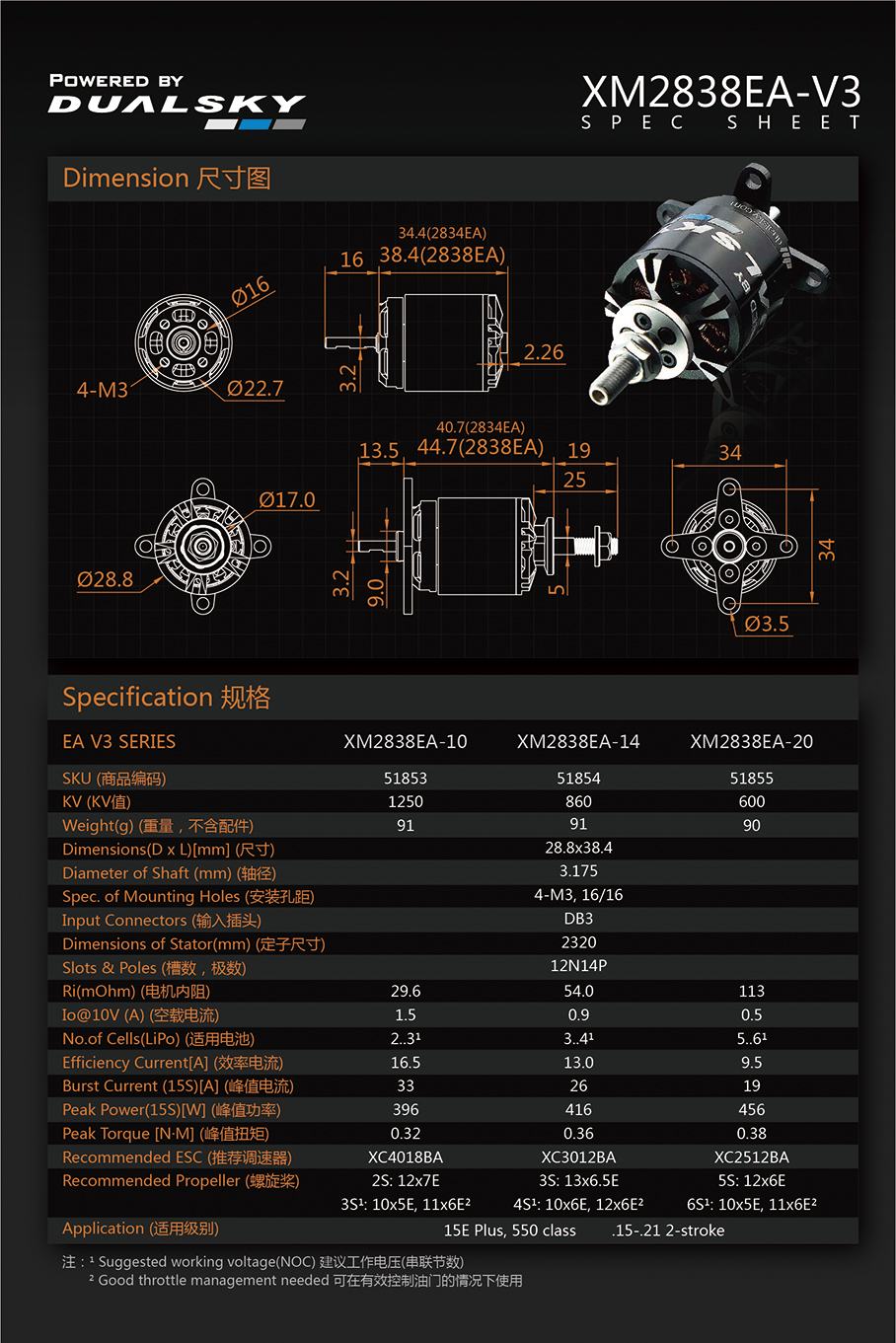 | 51854 | XM2838EA-14 | 860 RPM/V | 416W | 91 g |