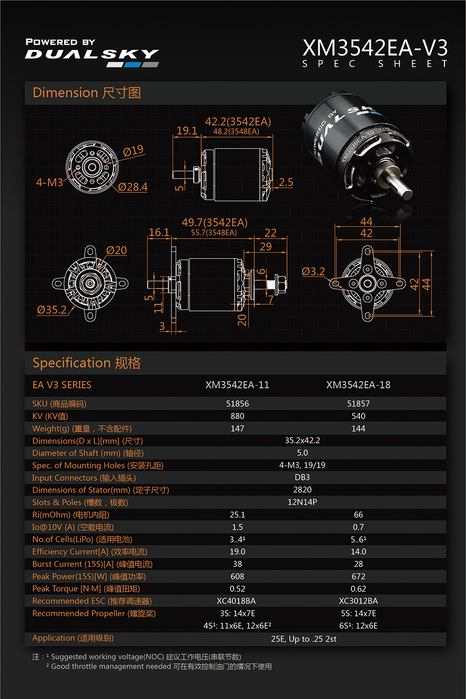 | 51857 | XM3542EA-18 | 540 RPM/V | 672W | 144 g |