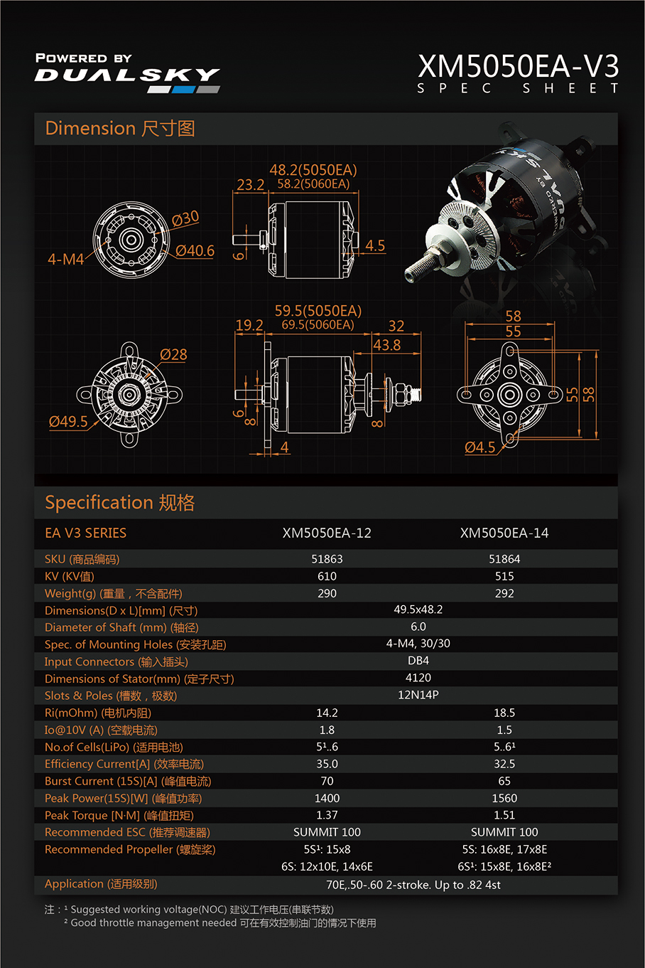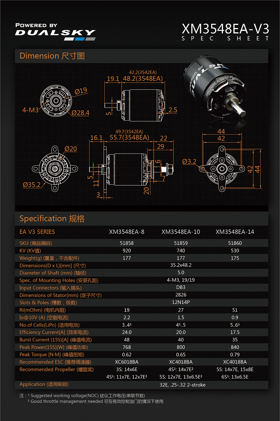 | 51860 | XM3548EA-14 | 530 RPM/V | 840W | 175 g |