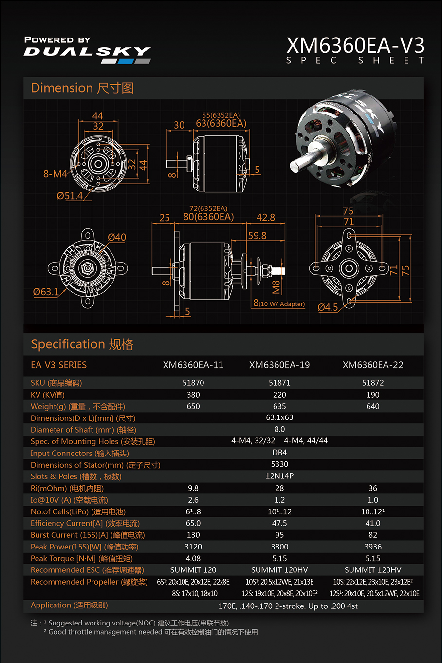 | 51870 | XM6360EA-11 | 380 RPM/V | 3120W | 650 g |